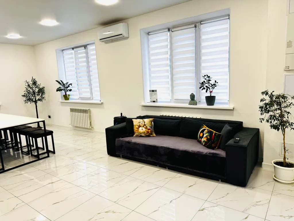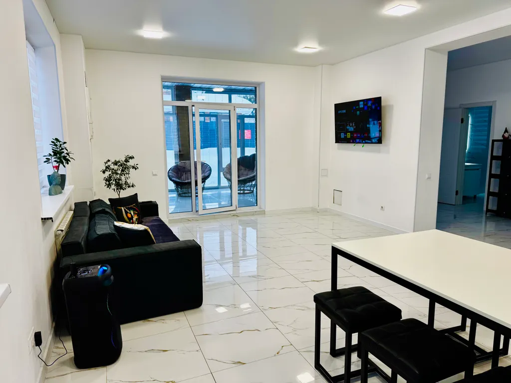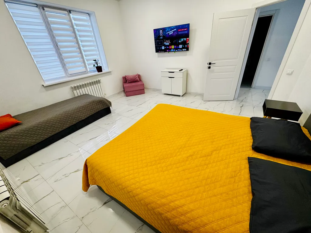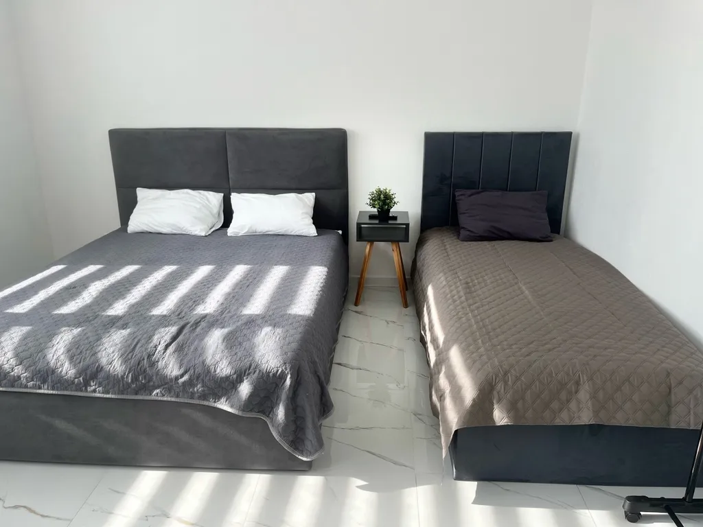 3 просторные комнаты, каждая с 4к tv, с 2-спальными и 1-спальными кроватями (матрасы ormatek). Есть также раскладной диван и два 1-спальных пуфа-трансформера (всего до 13 спальных мест)