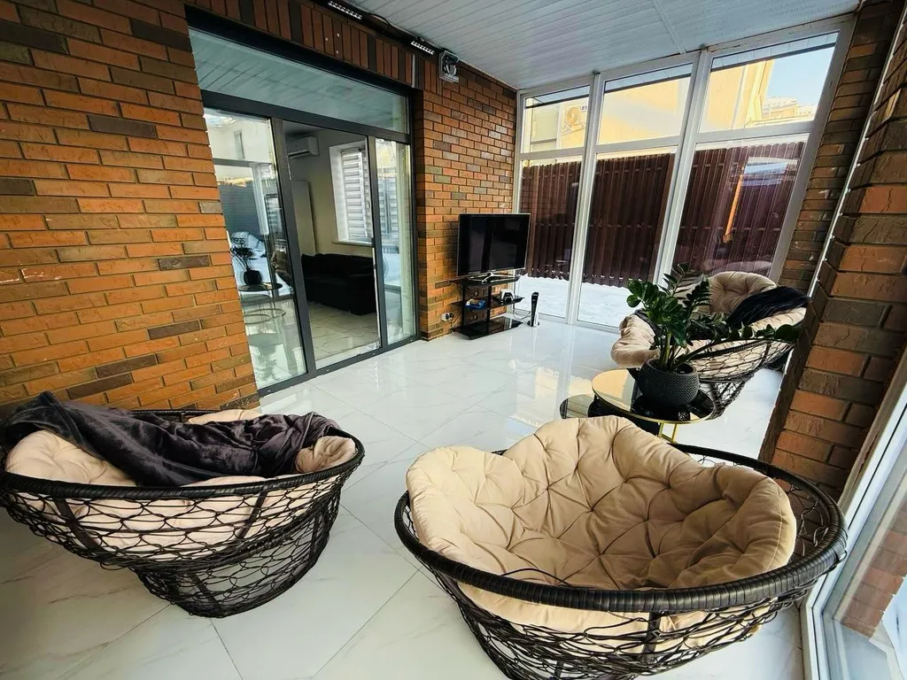 Уютная теплая терраса с панорамным остеклением, с удобной мягкой мебелью, 4k tv smart и sony playstation 5