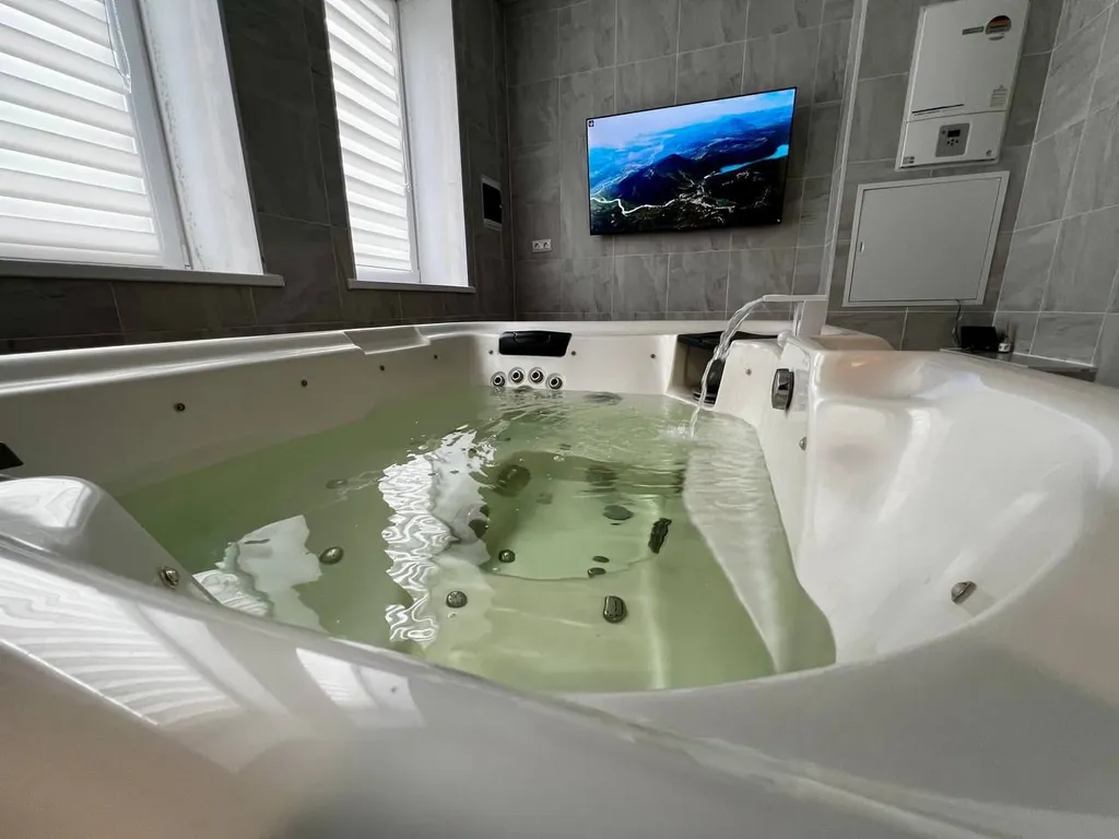 Джакузи с подогревом (220х160 см) в отдельной комнате с телевизором для максимального релакса (платная услуга).
