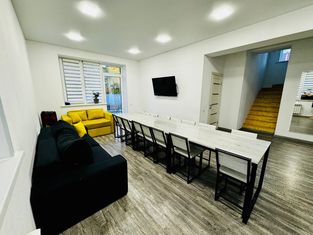Дневная вместимость дома до 20 гостей (в наличии на 20 персон: банкетный стол, стулья, полный набор столовой посуды и приборов для сервировки).