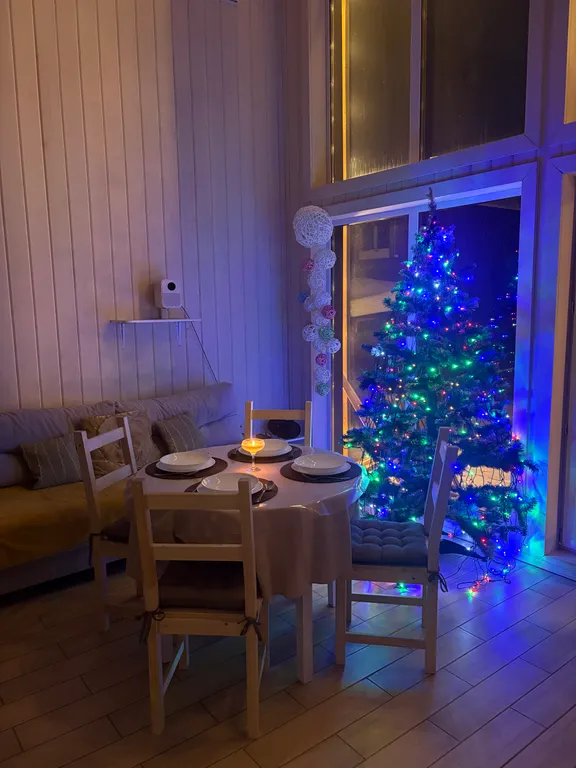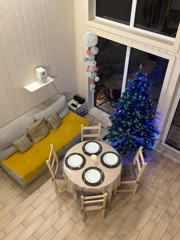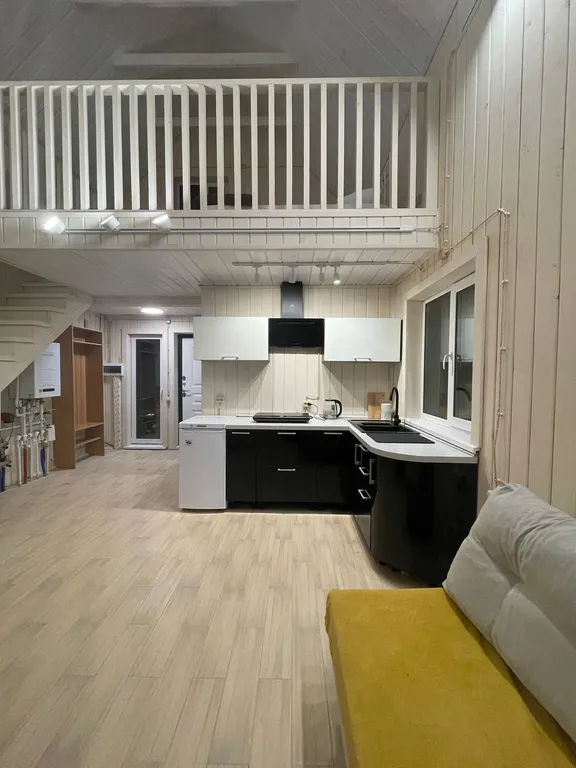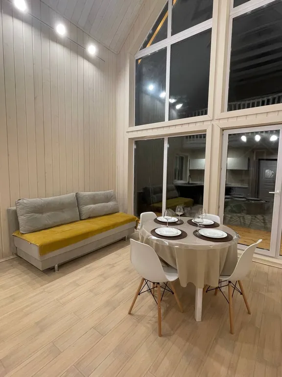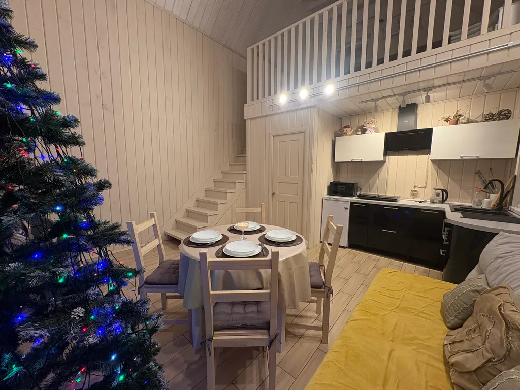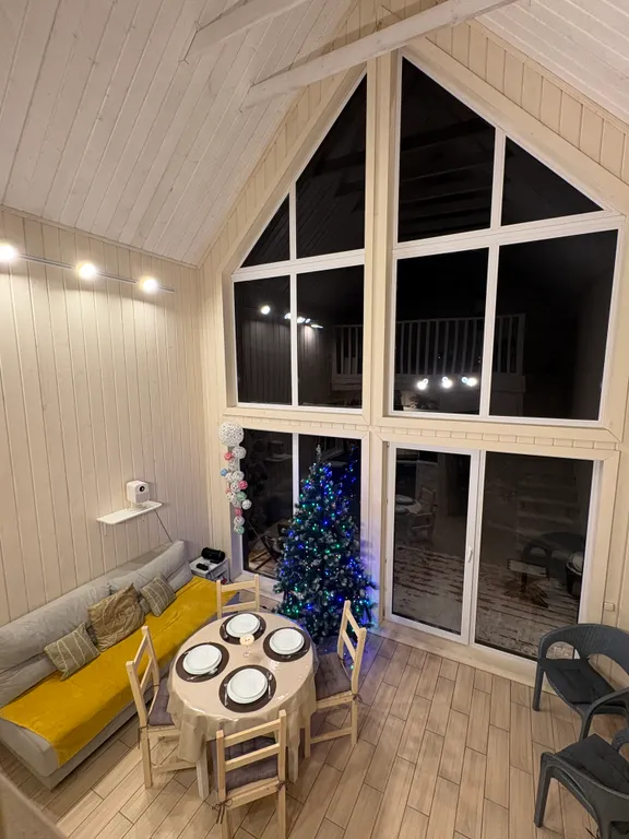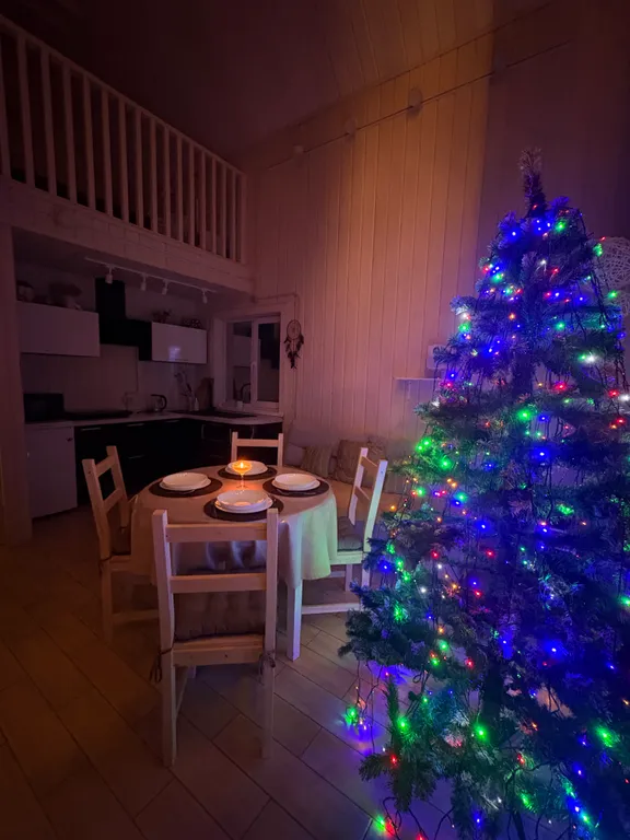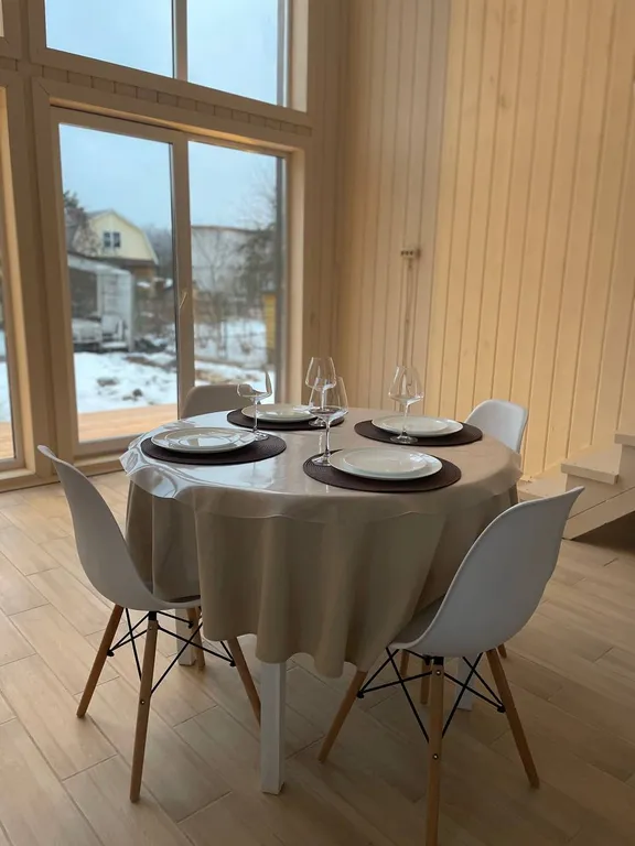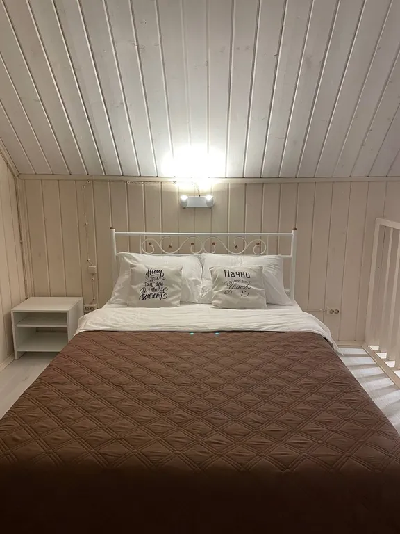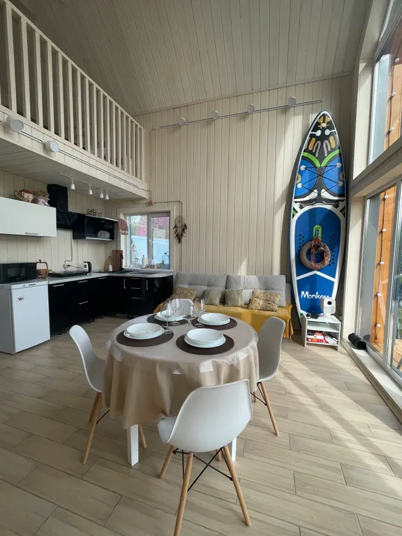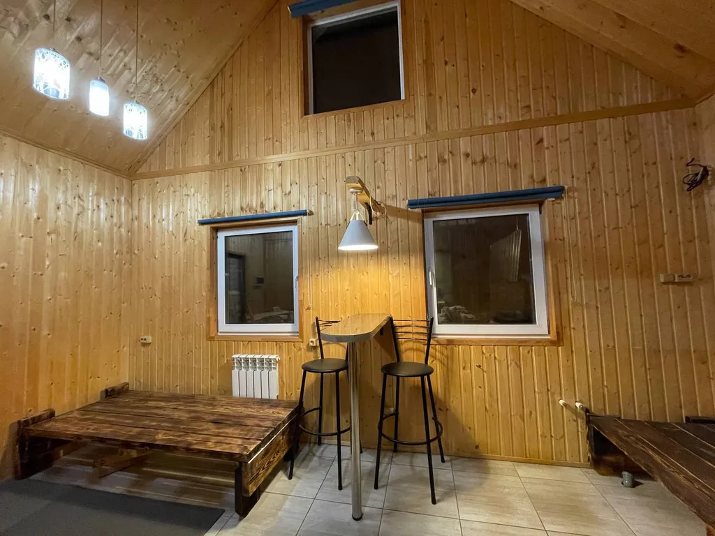 Дом рассчитан на комфортное проживание 2 человек с возможностью разместить еще двух гостей на первом этаже и при необходимости еще двух людей в бане.