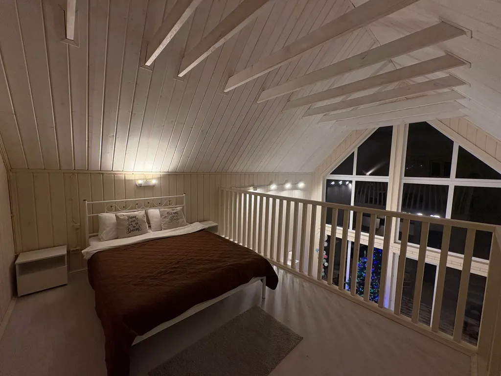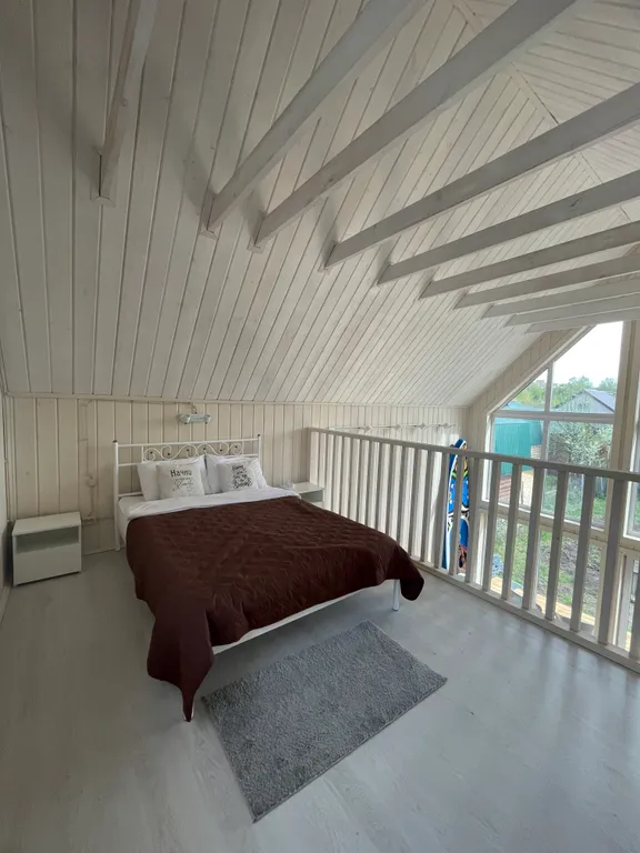 Спальня: на втором этаже уютная спальня, где утренний свет создаёт приятную атмосферу для пробуждения.