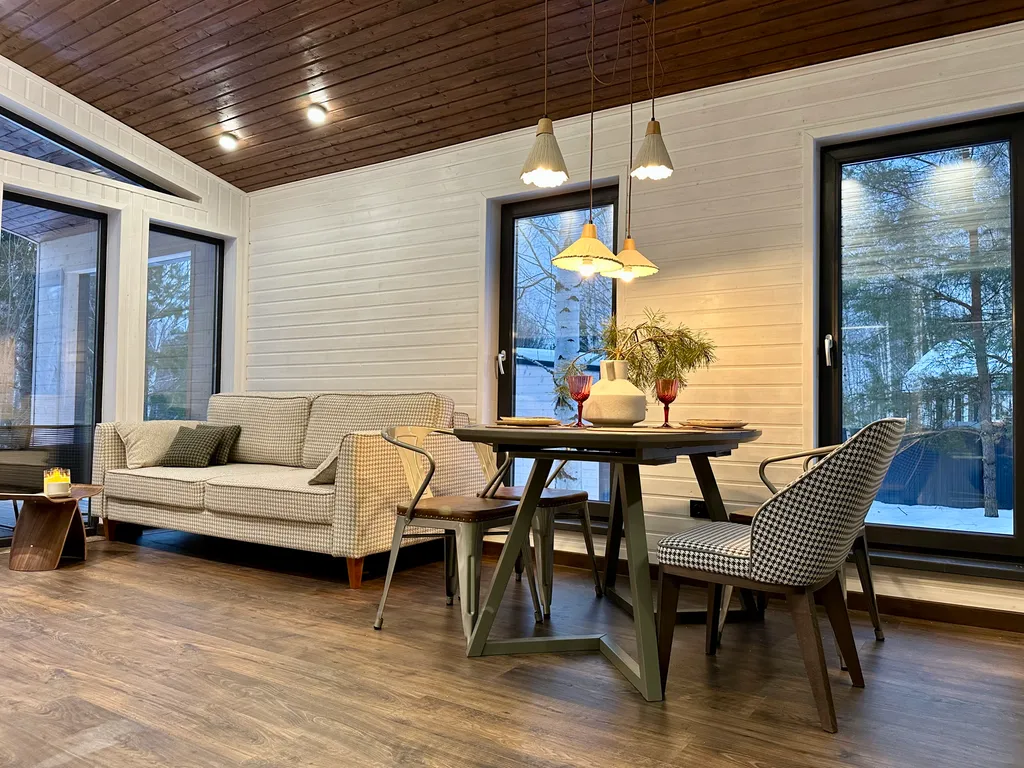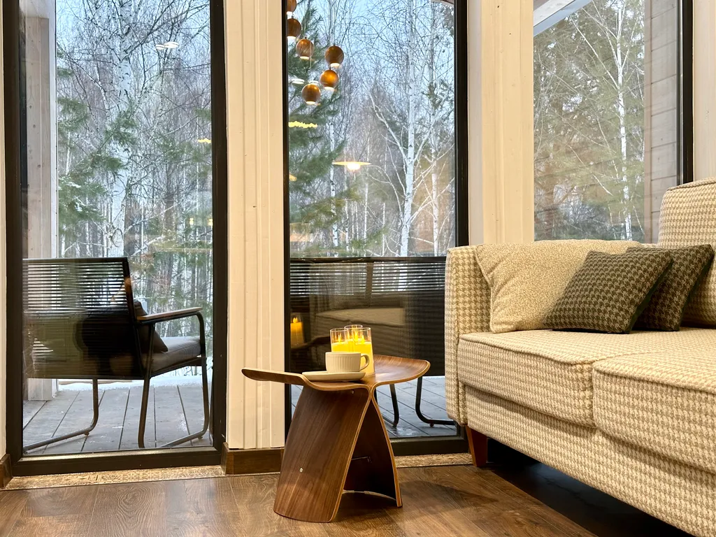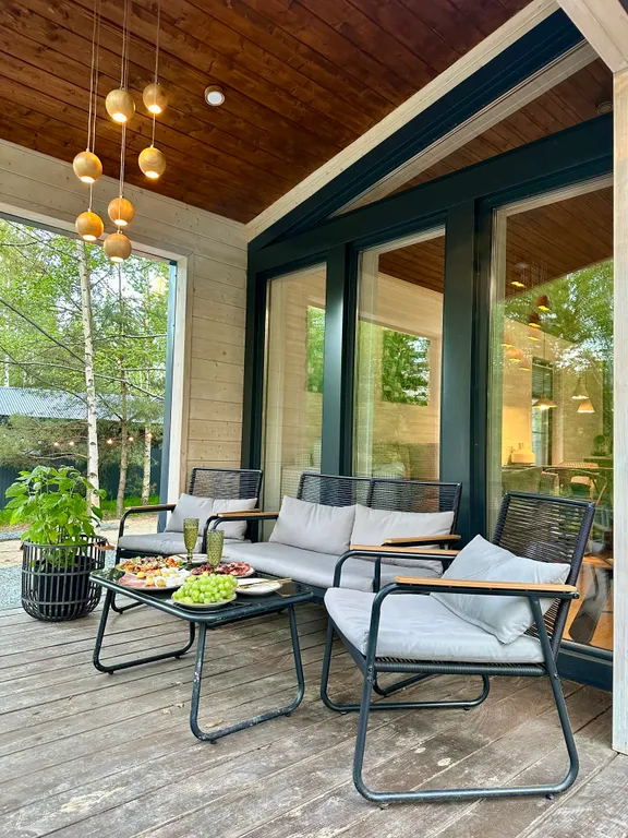 панорамные окна и терраса с видом на лес