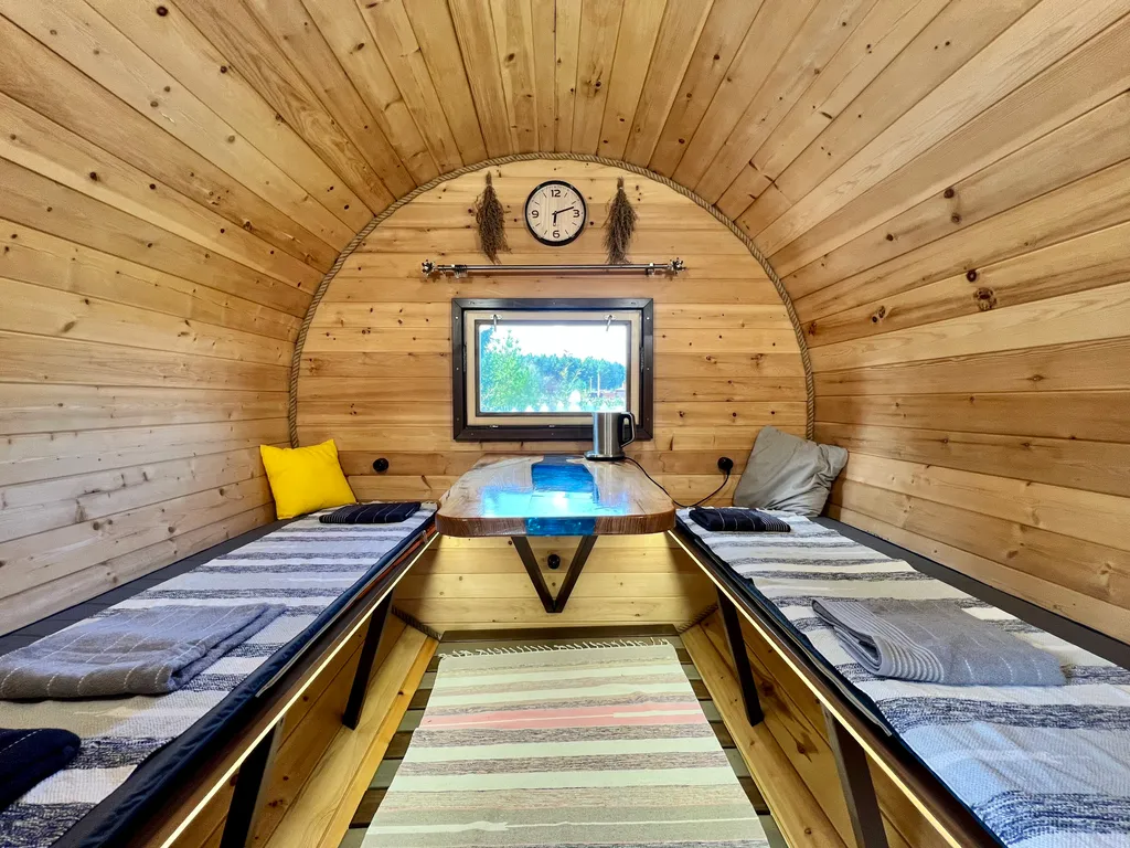 - Лыжи, вблизи нашего глэмпинга находится подготовленная лыжная трасса с очень живописным лесом
