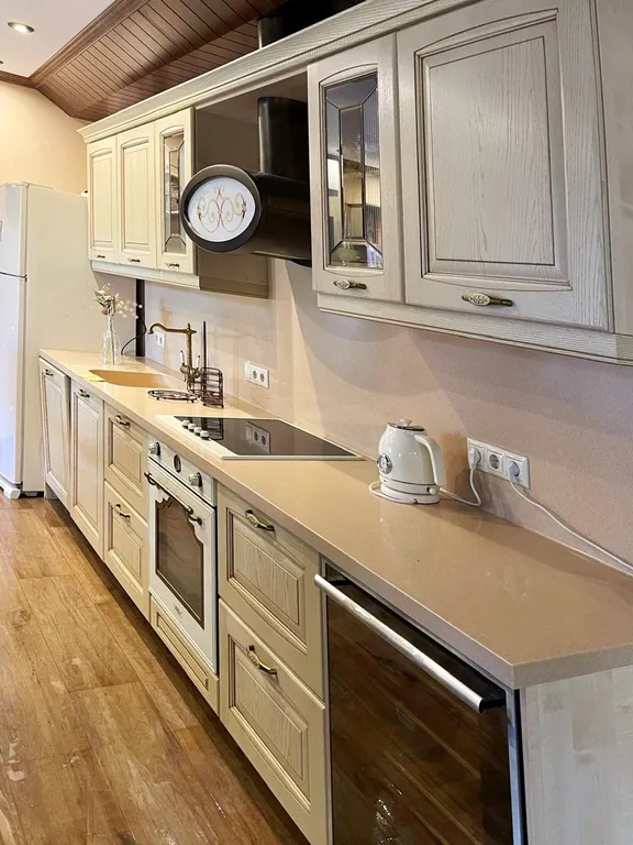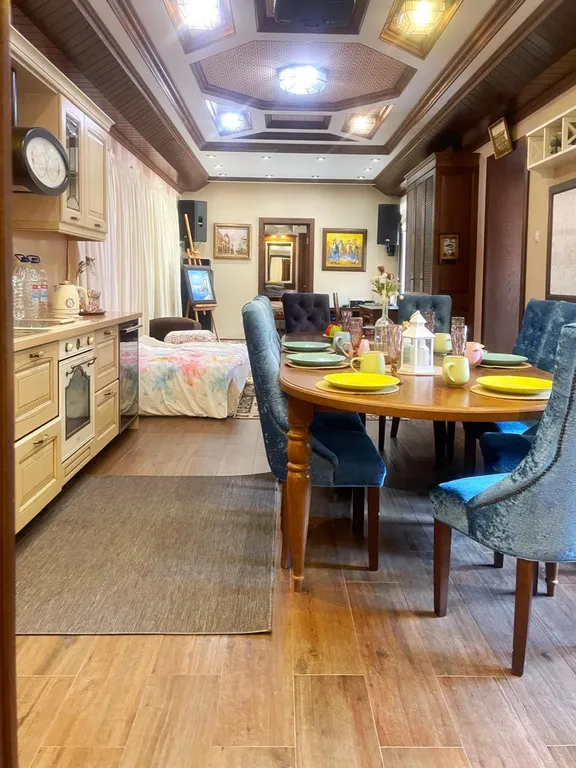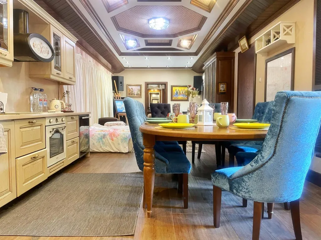 Уютный дом, площадью 80 м, с двумя мастер-спальнями (со своими санузлами), просторная кухня-гостиная, оборудованная современной техникой, терраса для чаепития с самоваром, 6 спальных мест.