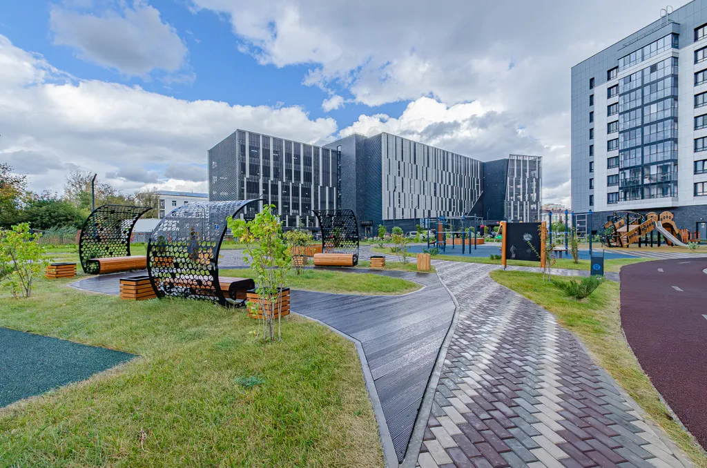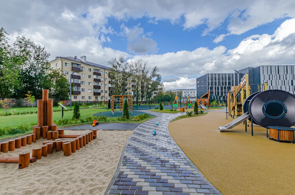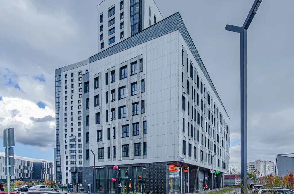 Рядом ТЦ «Мокки», ТЦ «Тандем», магазин «Метро», Московский рынок. От дома в двух минутах ходьбы магазины «Пятерочка», «Магнит», «Красное и белое». В доме расположены аптека, пекарня, пункты выдачи Ozon, WB.