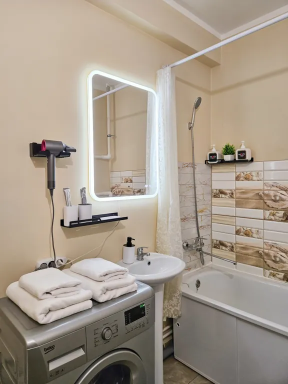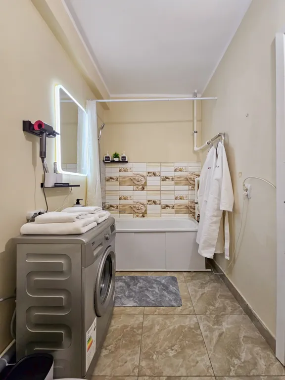 Техника: Большой ТВ с кабельными каналами, скоростной Wi-Fi, стиральная машина, утюг, фен.