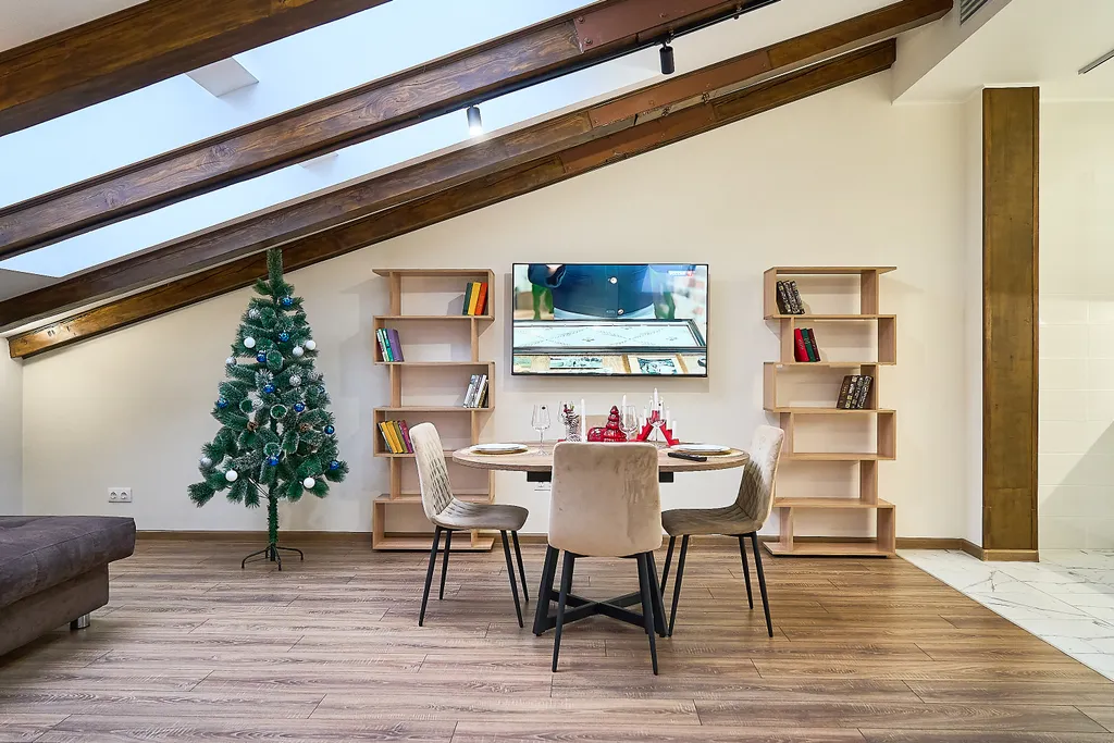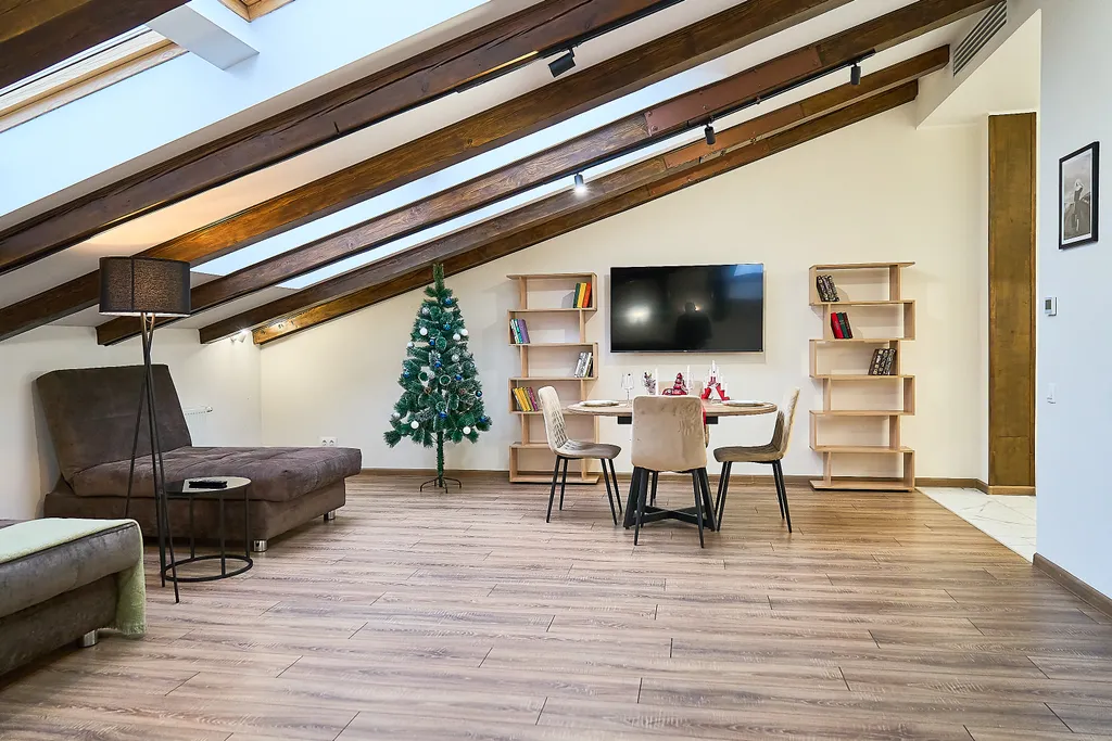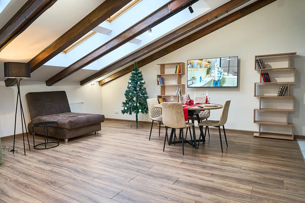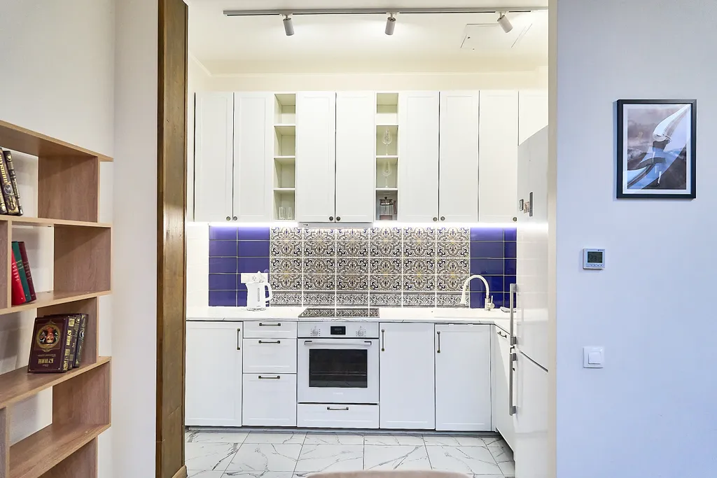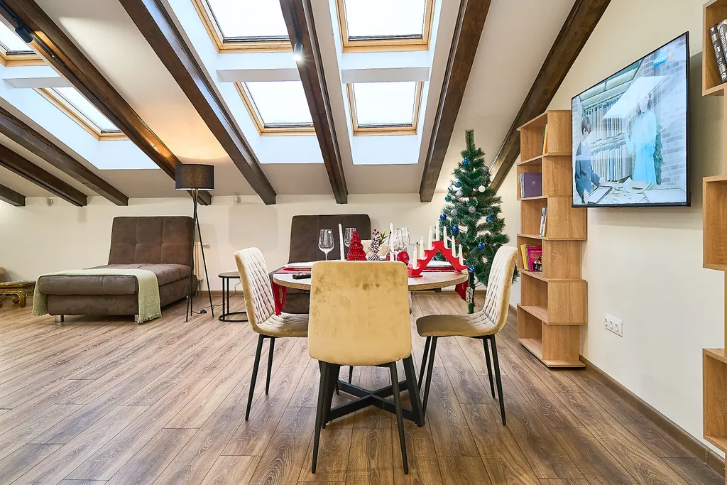 В апартаментах есть все необходимое для комфортного проживания гостей, большая (шириной 2 метра) двухспальная кровать, большой телевизор 65 дюймов, кухня снабжена всей необходимой техникой и посудой премиум класса: