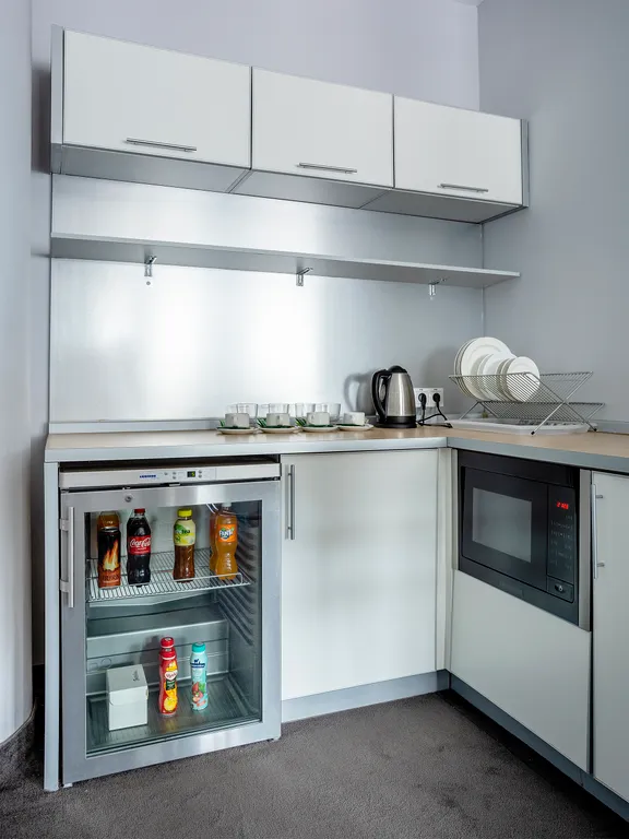 В номере две большие двуспальные кровати, оснащен всем необходимым для комфортного проживания: телевизор с плоским экраном, телефон, холодильник, оборудованная кухонная зона со всем необходимым, микроволновка, кондиционер/ система климат-контроля, чайная станция, ванная, фен, халаты, тапочки, туалетно-косметические принадлежности, рабочая зона, стол, стул.