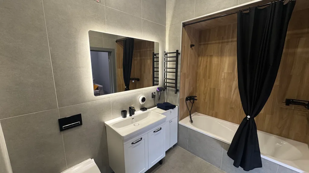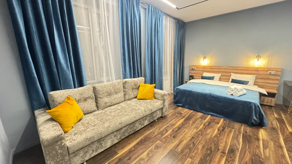 Идеальное решение для дружеской встречи или семейного отдыха — просторный номер «Серый Лофт», рассчитанный на комфортное размещение компании до 6 человек.