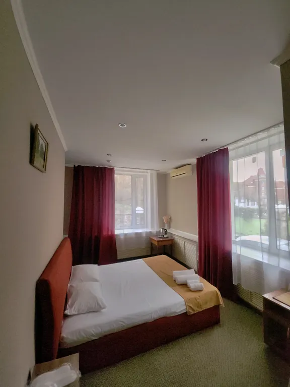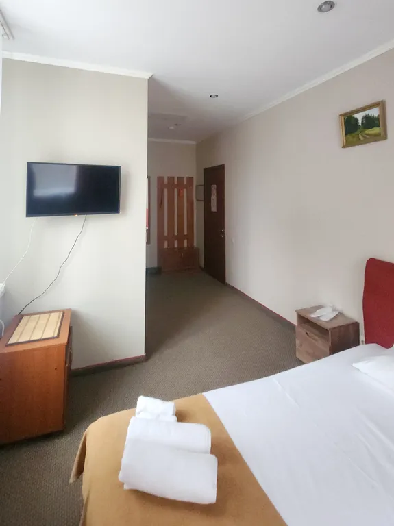 Номера оборудованы всем необходимым для комфортного проживания - двуспальная кровать,TV, шкаф, холодильник, ванная комната в номере.