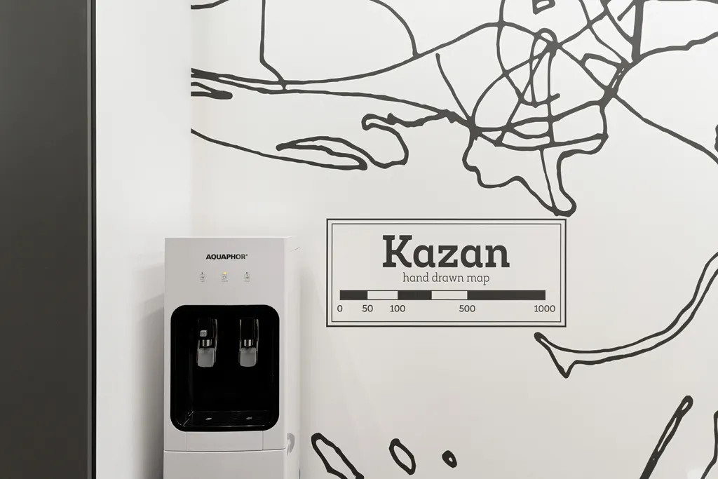 2. Кухня со всем необходимым наполнением: двухкомфорочная индукционная плита, чайник, мини холодильник, набор столовой и кухонной посуды, микроволновая печь, капсульная кофемашина.