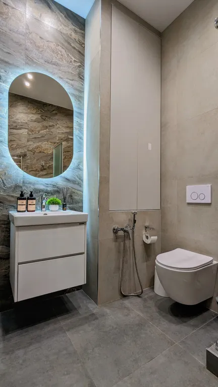 7. Сан узел с гигиеническим душем, душевой кабиной и косметикой индивидуального производства. Гигиенические принадлежности, набор одноразовых тапочек, халаты (по запросу).