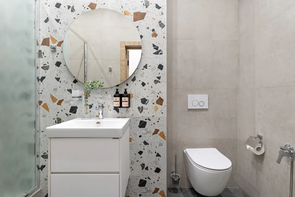 7. Сан узел с гигиеническим душем, душевой кабиной и косметикой индивидуального производства. Гигиенические принадлежности, набор одноразовых тапочек.