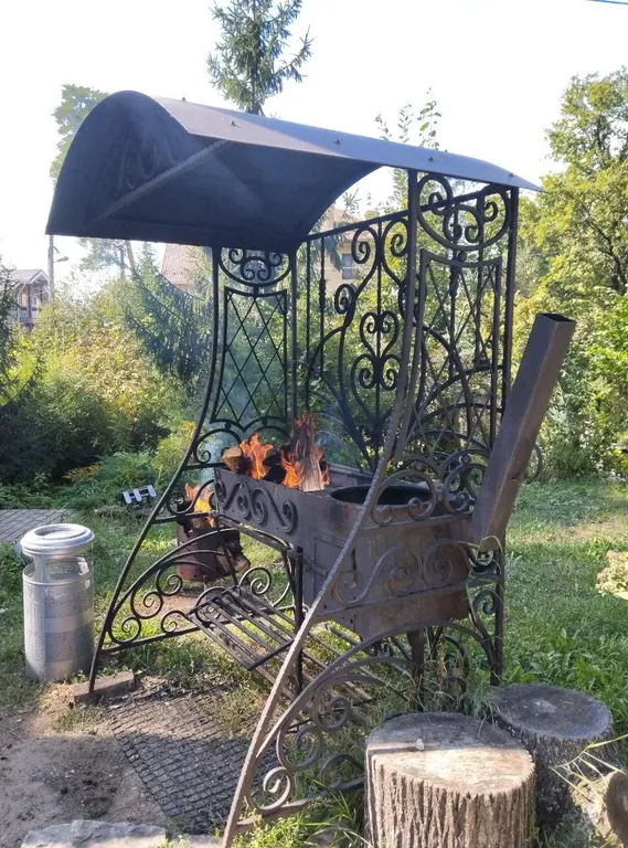 Возле дома расположен удобный мангал. Уголь, решетки и розжиг всегда есть в наличии.