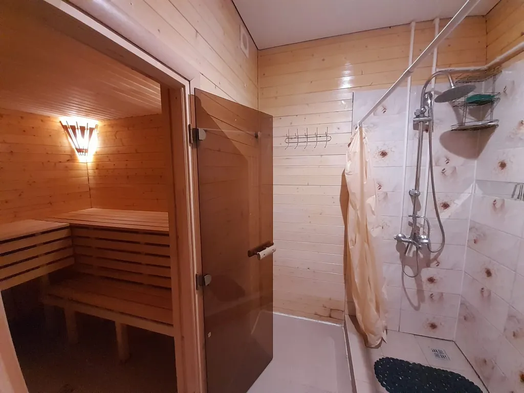 Дом новый, сдаётся впервые от собственника! 4 спальни на втором этаже с двухместными кроватями и большой трёхместный диван внизу, 10 спальных мест, сухая сауна (2500 ₽ на 3 часа), летний бассейн на улице, беседка и мангал. До песчаного пляжа напротив «Казань-Арены» 8 минут пешком!