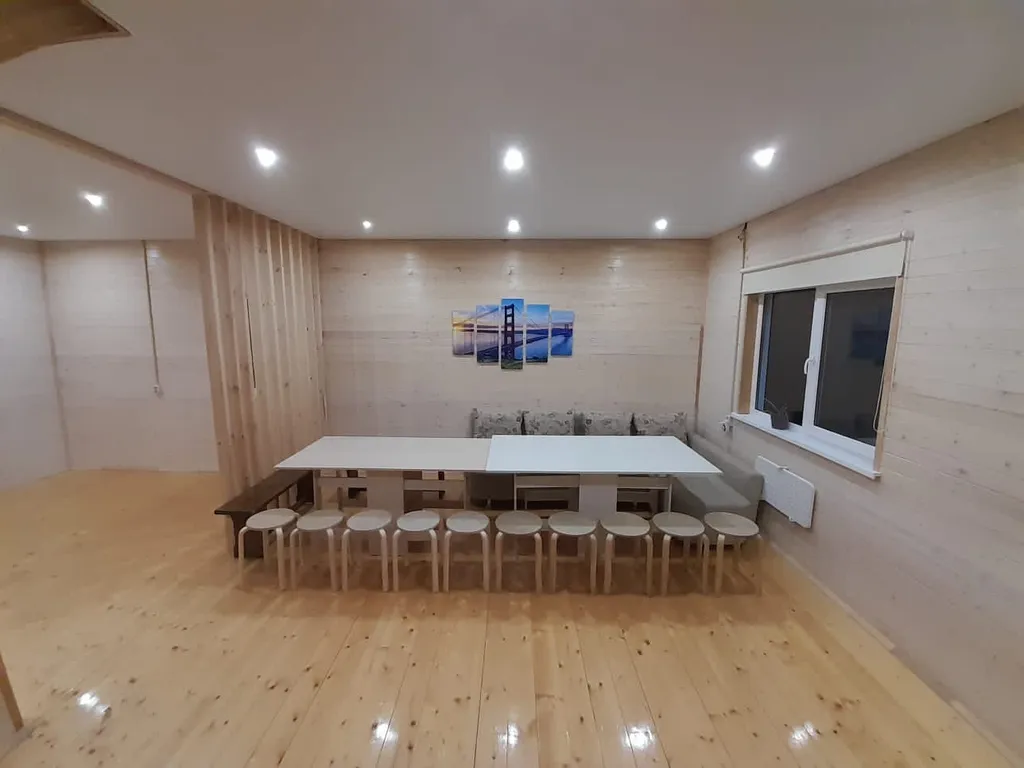 4 спальни на второй этаже с двухместными кроватями и большой трёхместный диван внизу, 12 спальных мест. Предоставляем постельное белье и ручные полотенца ( банные полотенца за 150₽)