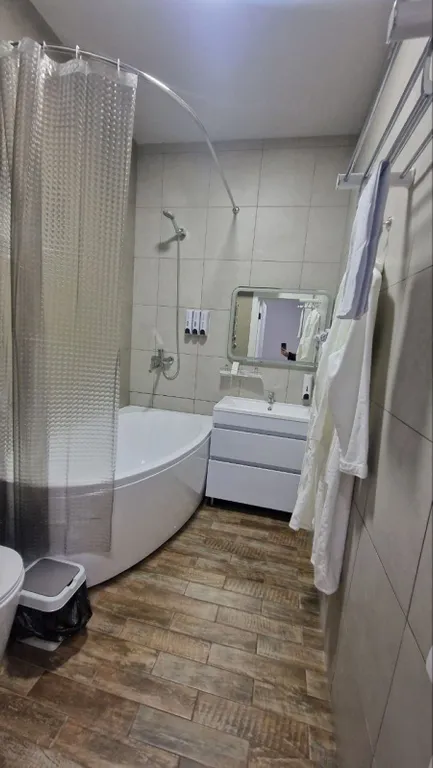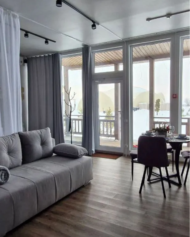В домике есть: Wi-Fi, Телевизор с функцией смарт, музыкальная колонка с караоке, холодильник, микроволновая печь, чайник, посуда, вода, чай, кофе, какао, соль, перец, сахар, спальные места повышенной комфортности, ванные принадлежности, гигиенический набор, халаты, тапочки.