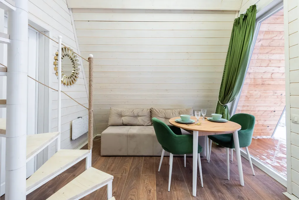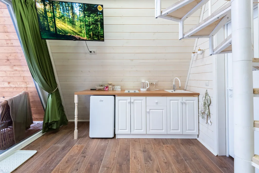 В доме есть отдельная спальная комната с дверью на первом этаже, спальная на втором этаже, раскладной диван в гостиной. Комфортные ортопедические матрасы, мягкие подушки и воздушные одеяла.